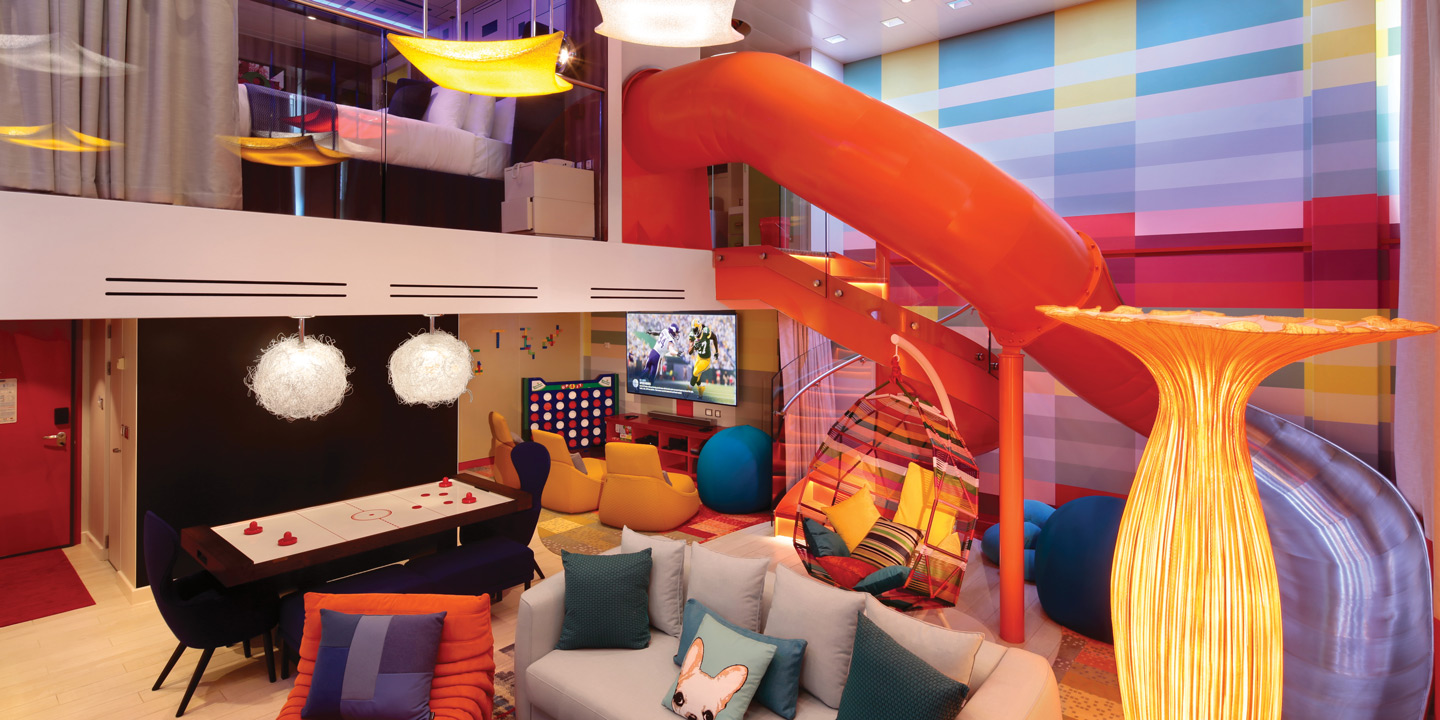 The Ultimate Family Suite är den första och enda i sitt slag som är tillgänglig exklusivt ombord på Symphony of the Seas®, Spectrum of the Seas® och Wonder of the Seas®. Denna tvåvåningssvit är ett himmelrike för familjer med aktiviteter och upplevelser för alla åldrar i det egna rummet – varva ner på din balkong i din alldeles egna jacuzzi, delta i en omgång bordtennis, tävla med familjemedlemmarna i ditt privata spelrum komplett med videospelsystem och tillgång till alla spel du kan önska dig, åk rutschkana mellan våningarna, njut av en biokväll tillsammans... Självklart finns en elegant, separat mastersvit som föräldrarna kan dra sig tillbaka till.