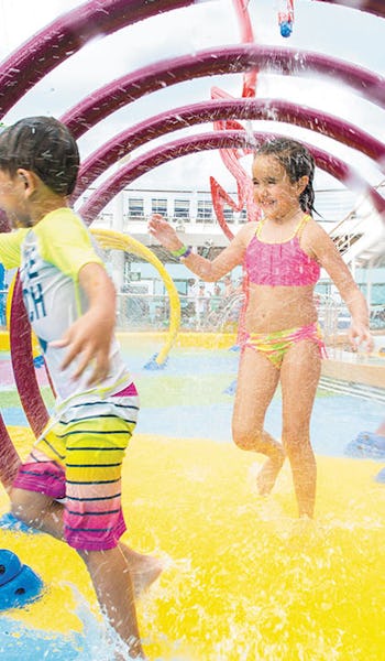 Fånga en våg i någon av de två surfsimulatorerna FlowRider® på däck 16. Släpp lös barnen i den fartfyllda vattenparken Splashaway Bay℠, bland färgglada vattenrutschbanor, vattenkanoner och bubbelpooler. Låt din inre rockstjärna lysa i kapp med musiken på On Air Club. Lär dig baka cup cakes eller laga kulinariska maträtter och fantastiska desserter tillsammans med de duktiga kockarna ombord. Unna dig lite egen tid med skön träning och lyxiga spabehandlingar på Vitality℠ Spa & Fitness Centre.
