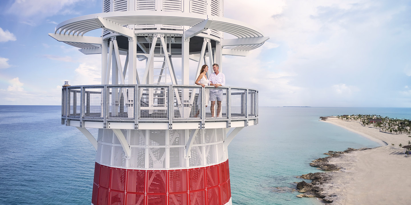 Fartygen lägger till direkt vid ön så du kan enkelt gå av och ombord vid ditt besök på Ocean Cay. Njut av sol och bad och aktiviteter under dagen, gå ombord och gör dig iordning för kvällen, och återvänd sedan i land för nattens festligheter. Vad sägs om en traditionell Bahamian Junkanoo-parad, strandfest med DJ och en fantastisk ljusshow från fyren?