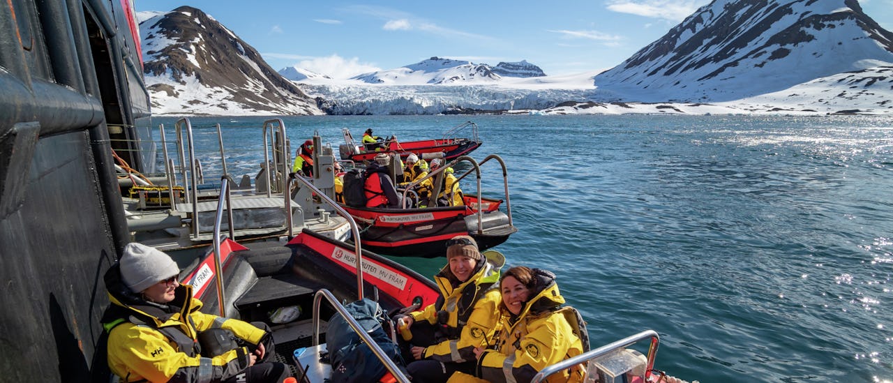 Fram har ett fullt utrustat däck för expeditionsutrustning och du tar dig tryggt och säkert iland med stabila Polarcirkel-båtar.