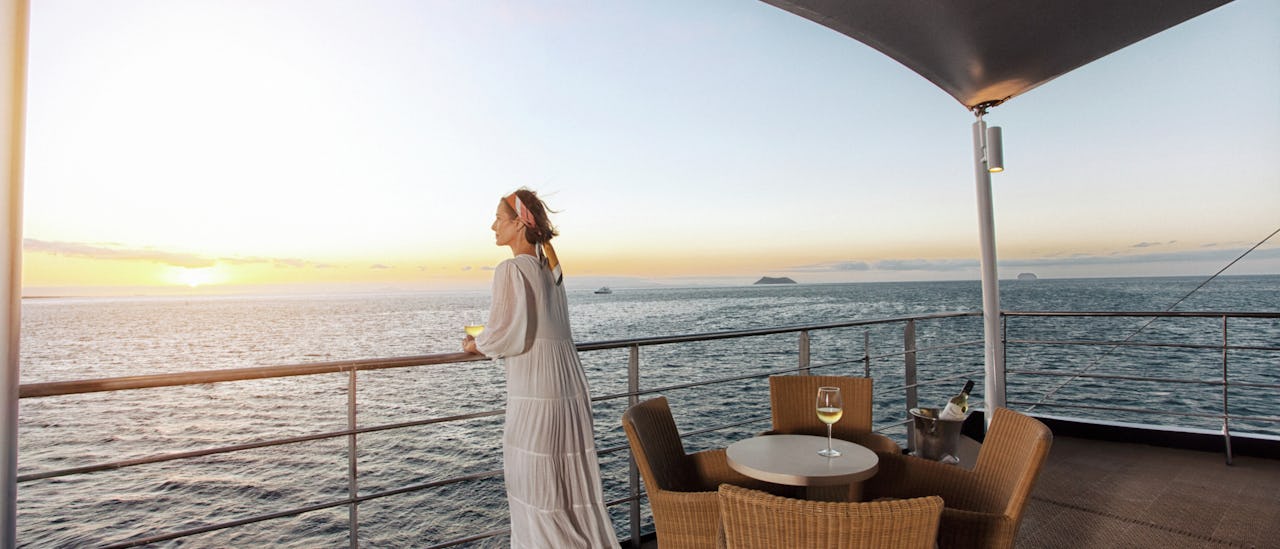 Njut av din Galápagos-expedition i solen på Sky-däck, här finns även soldäcket och gym.