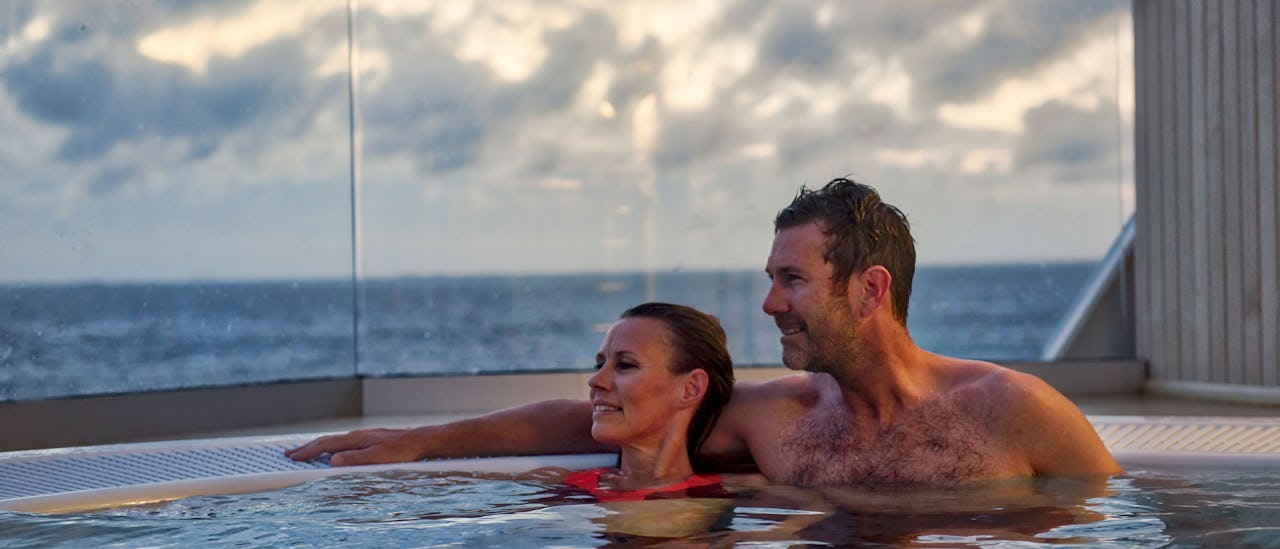 Koppla av i bekväma vilstolar framför oförglömliga naturlandskap eller kliv ner i bubbelpoolen ute på däck.