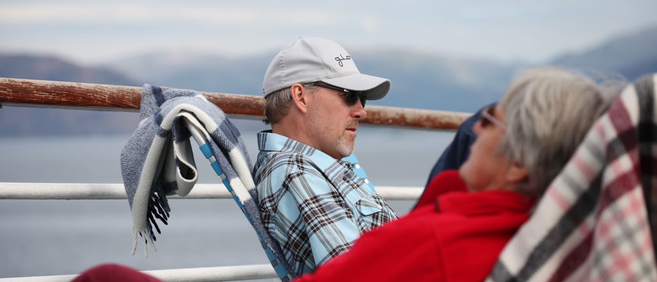 Koppla av i bekväma solstolar med oöverträffad utsikt över det oförglömliga naturlandskapet efter en lång dag med aktiviteter.