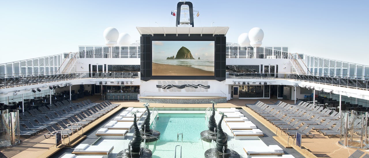 Pooldäcket är uppdelat i två områden med pooler som tillhör de allra största till havs.