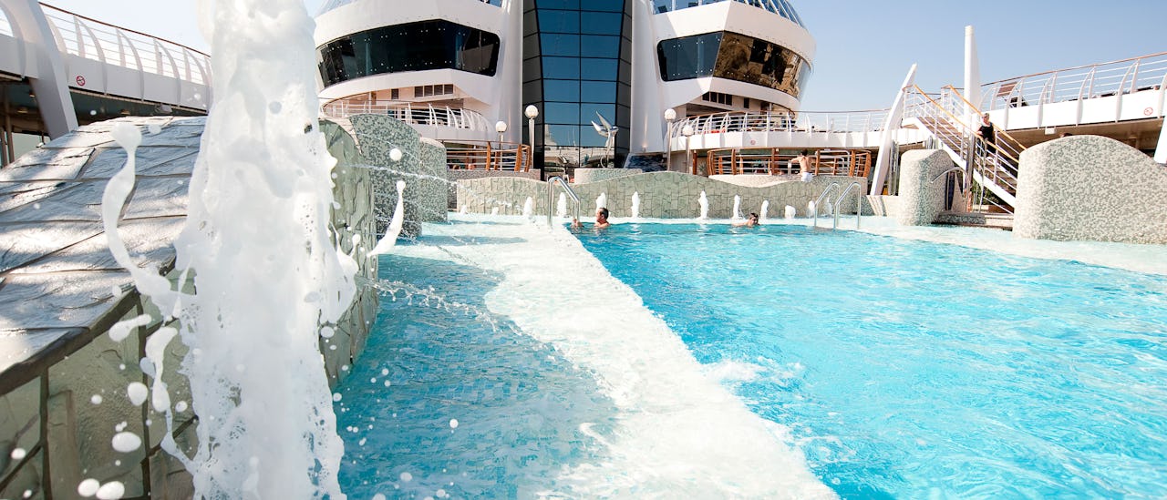 Sola och bada på det sköna pooldäcket eller varva ner i den 1 500 kvm stora spaavdelningen med turkiskt bad.