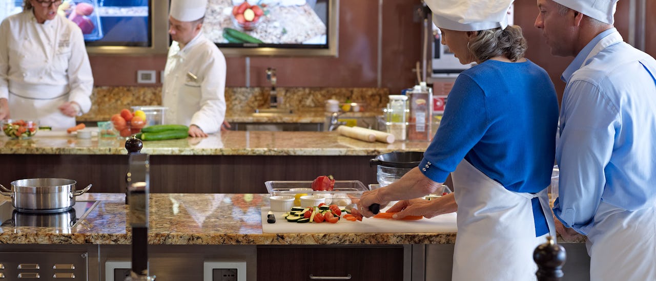 Tillaga dina favoriträtter under vägledning av Oceanias stjärnkockar i det toppmoderna undervisningsköket ”The Culinary Center”.