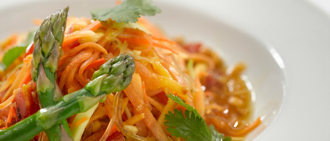 Fräsch papaya- och nudelsallad ombord på Oceania Cruises fartyg i O-class.