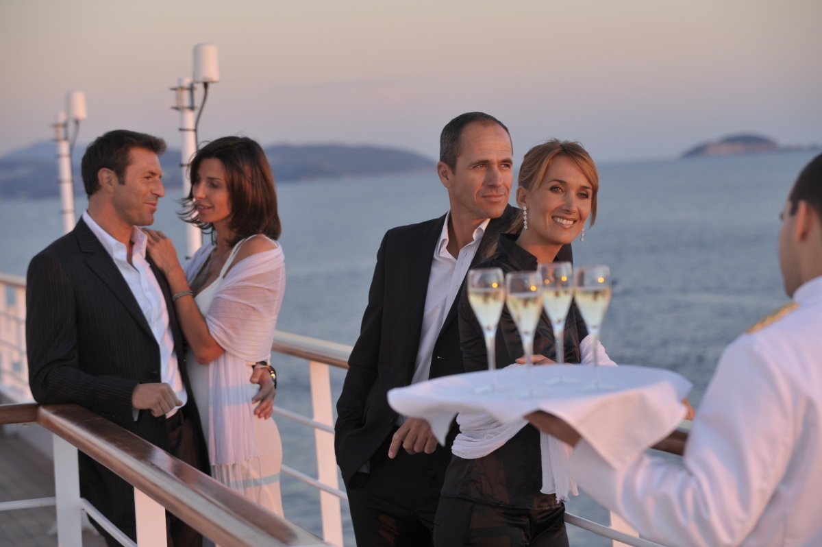 Avnjut franska klassiker i huvudrestaurangen La Licorne eller buffetrestaurangen La Boussole högst upp på däck 6. Ponant är All Inclusive.