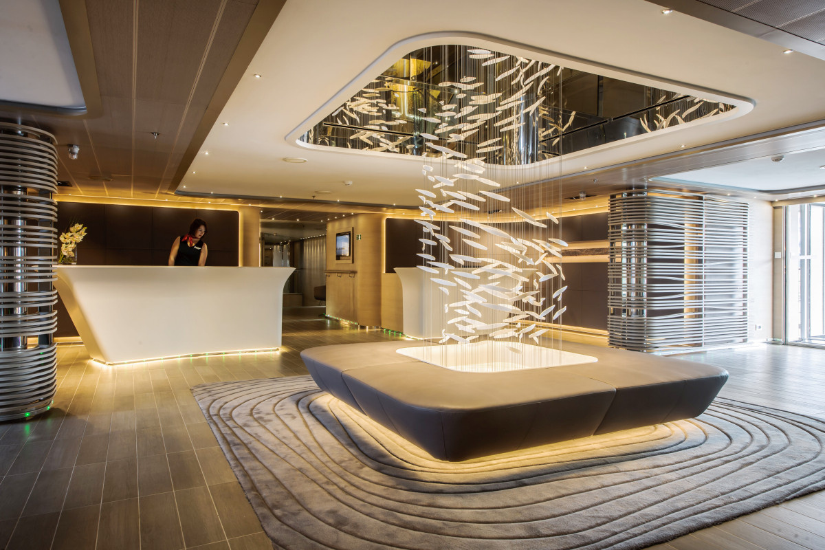 Njut av sköna solbäddar på pooldäcket, välutrustat gym och ett avkopplande spa.