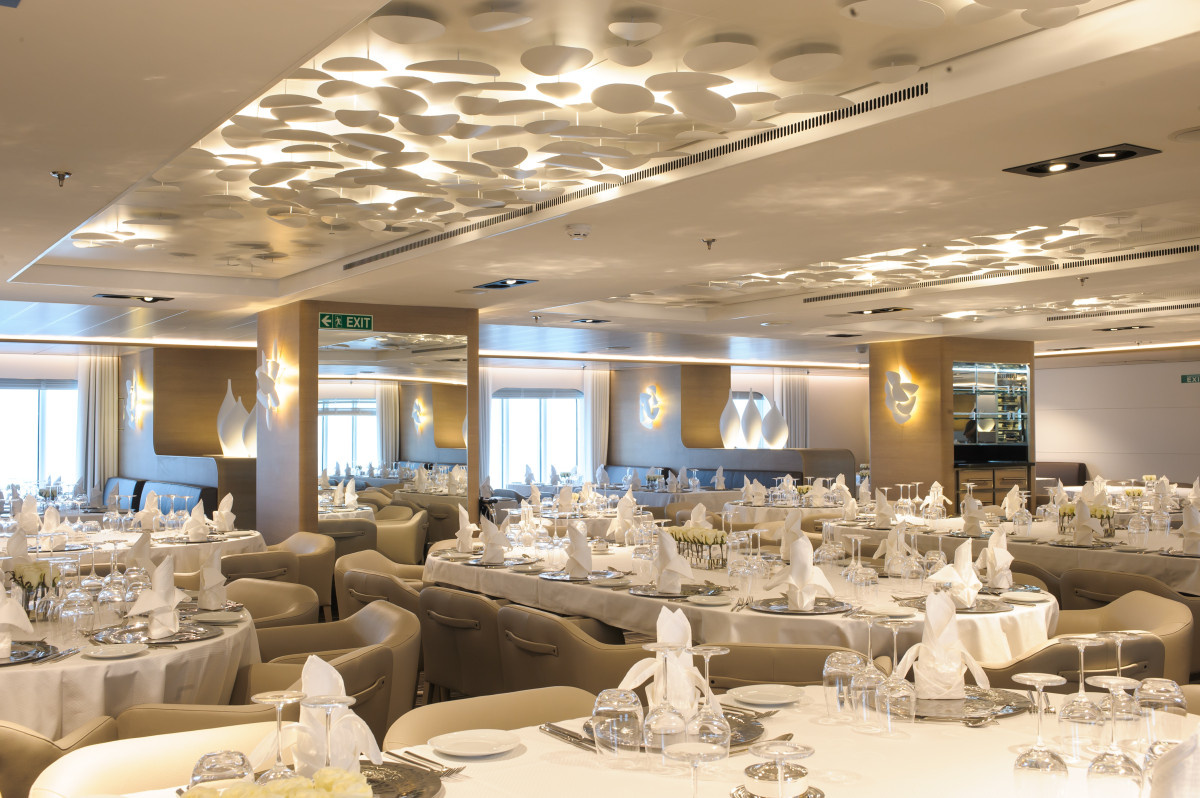 Avnjut franska klassiker i huvudrestaurangen Le Coromandel eller buffetrestaurangen Le Rodrigues högst upp på däck 6. Ponant är All Inclusive.