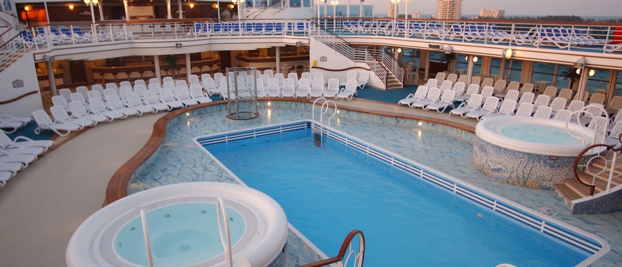 Belöna dig själv på Lotus Spa och varva ner på pooldäcket indelat i flera områden, varav ett under tak.