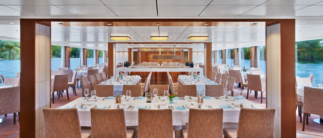 Restaurangen, belägen på mellersta däck, är huvudrestaurangen där alla måltider serveras under kryssningen. Med panoramafönster som erbjuder fantastisk utsikt kan du njuta av regionala specialiteter och dagens maträtter.